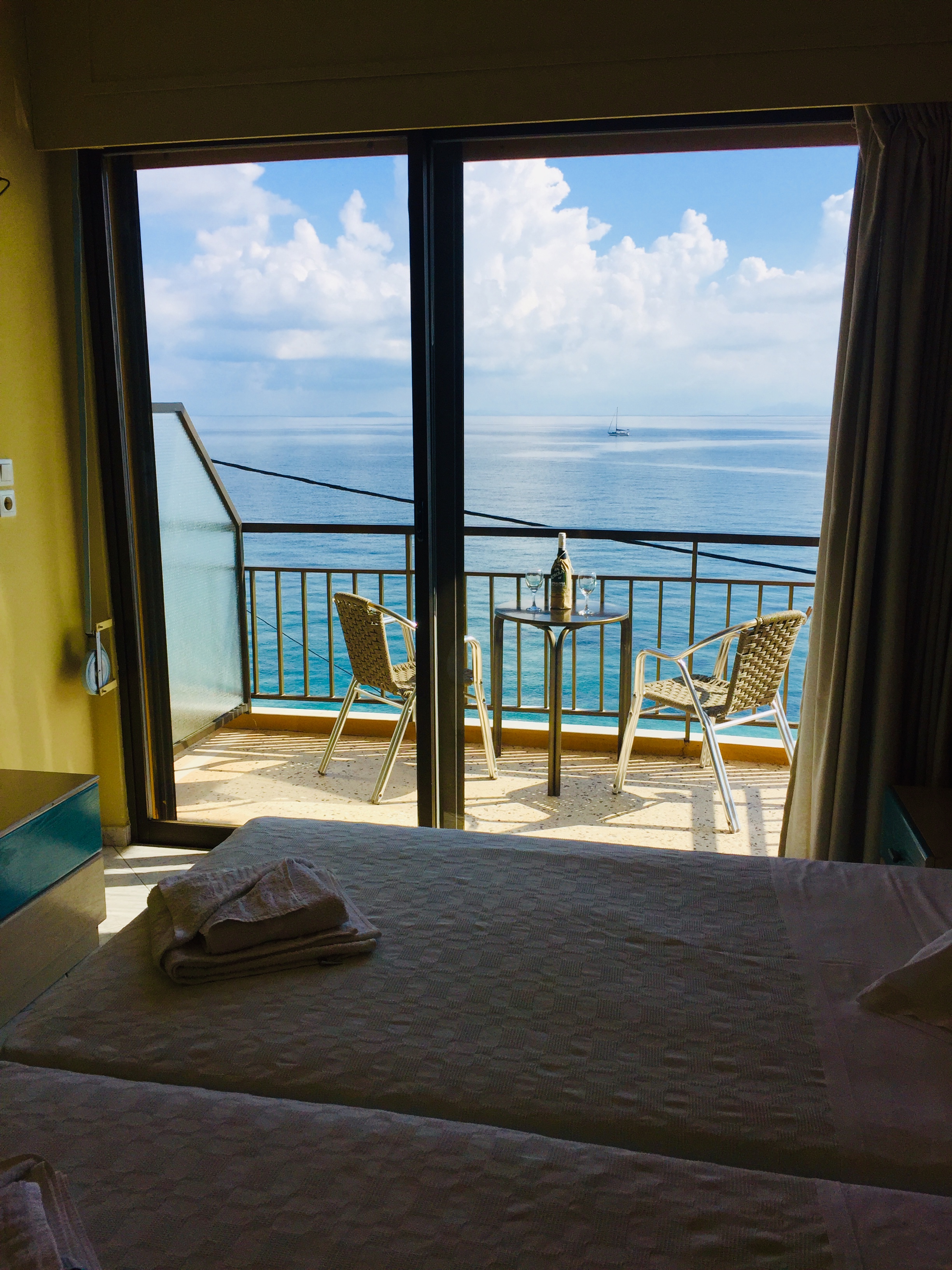 Each room has its own private balcony with a magnificent view of the sea, as well as a minibar, A/C, T.V and internet connection. The hotel has a specially designed room, on the mezzanine floor and a caf'e, situated just in front of the hotel, right on the beach, where breakfast, drinks and snacks can be enjoyed
